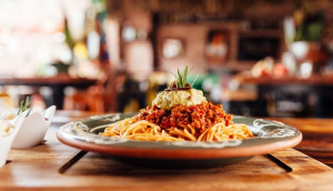 Acılı ve zeytinli domates soslu penne makarna, parmesan peyniri ile